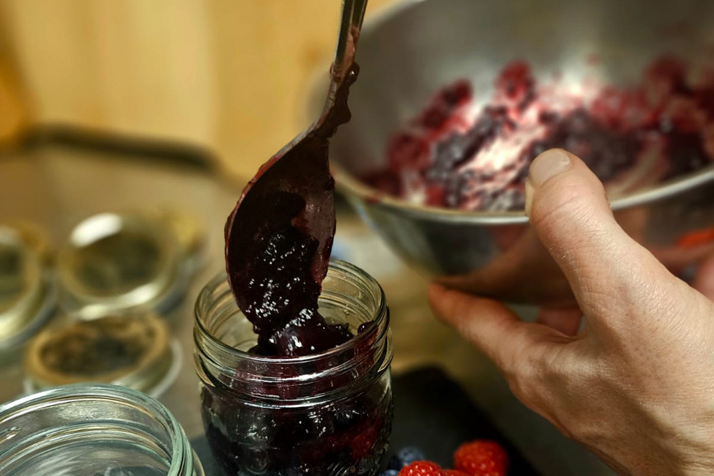 5. Die fertige Marmelade in die Gläser füllen und verschließen.