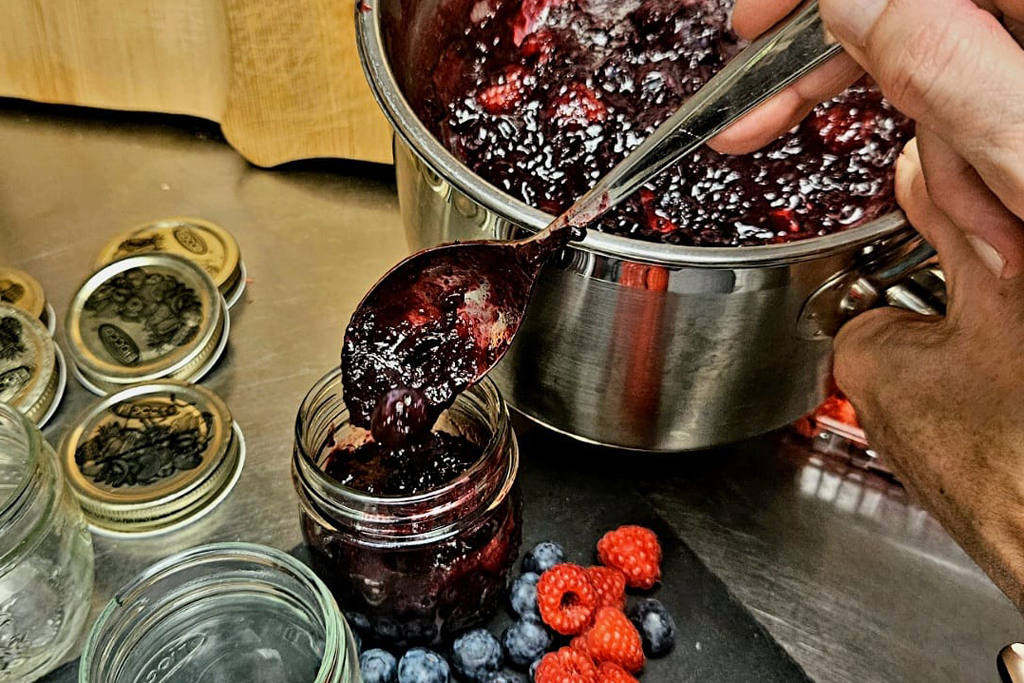 Neben der Orangenmarmelade haben wir auch einen Beerentraum aus den Früchten des Sommers zubereitet. Eine Mischung aus verschiedenen Beeren, die wir über die Saison gesammelt haben – von saftigen Himbeeren über süße Erdbeeren bis hin zu frischen Brombeeren.