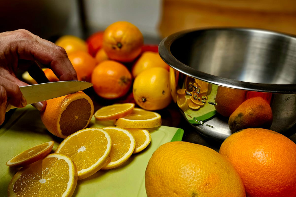 1. Die Orangen gründlich waschen und abtrocknen.